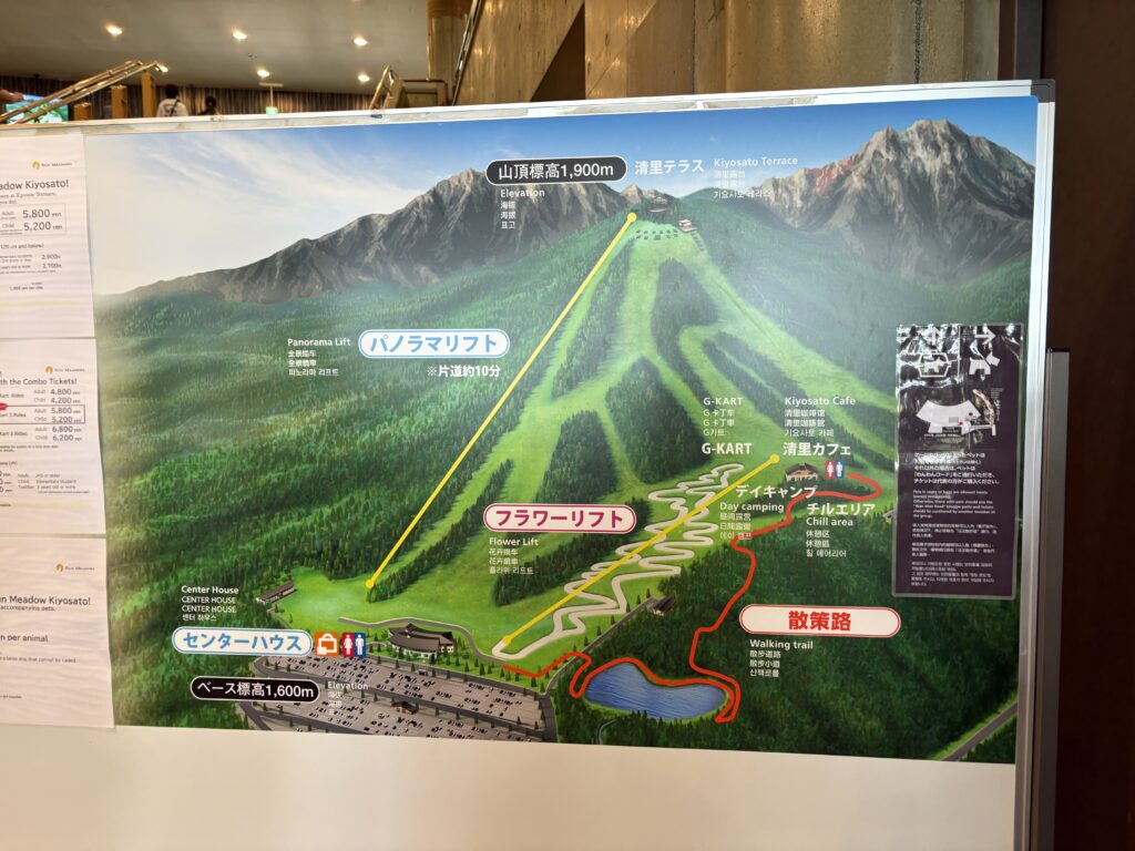 センターハウスから標高1700mの清里カフェ、G-KART乗り場を繋ぐフラワーリフトがあり、